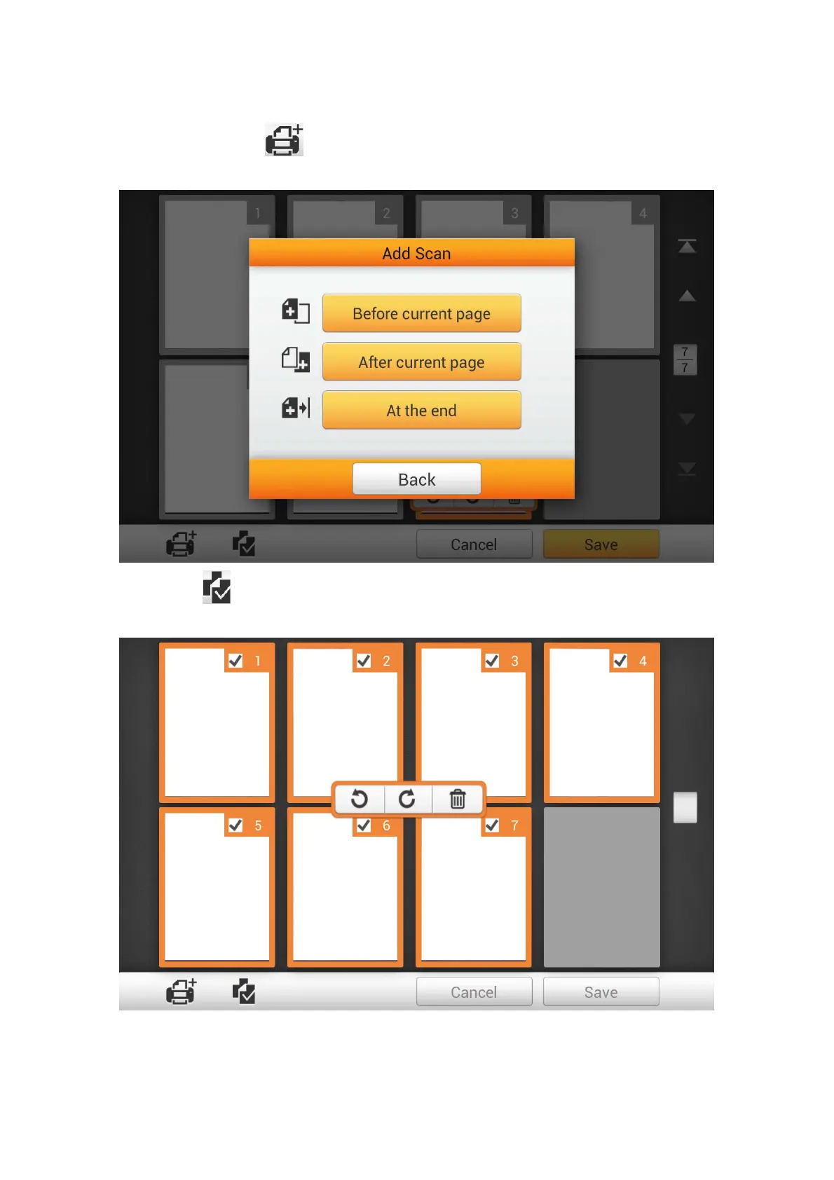 If you want to scan additional documents, first select a desired scanned image on