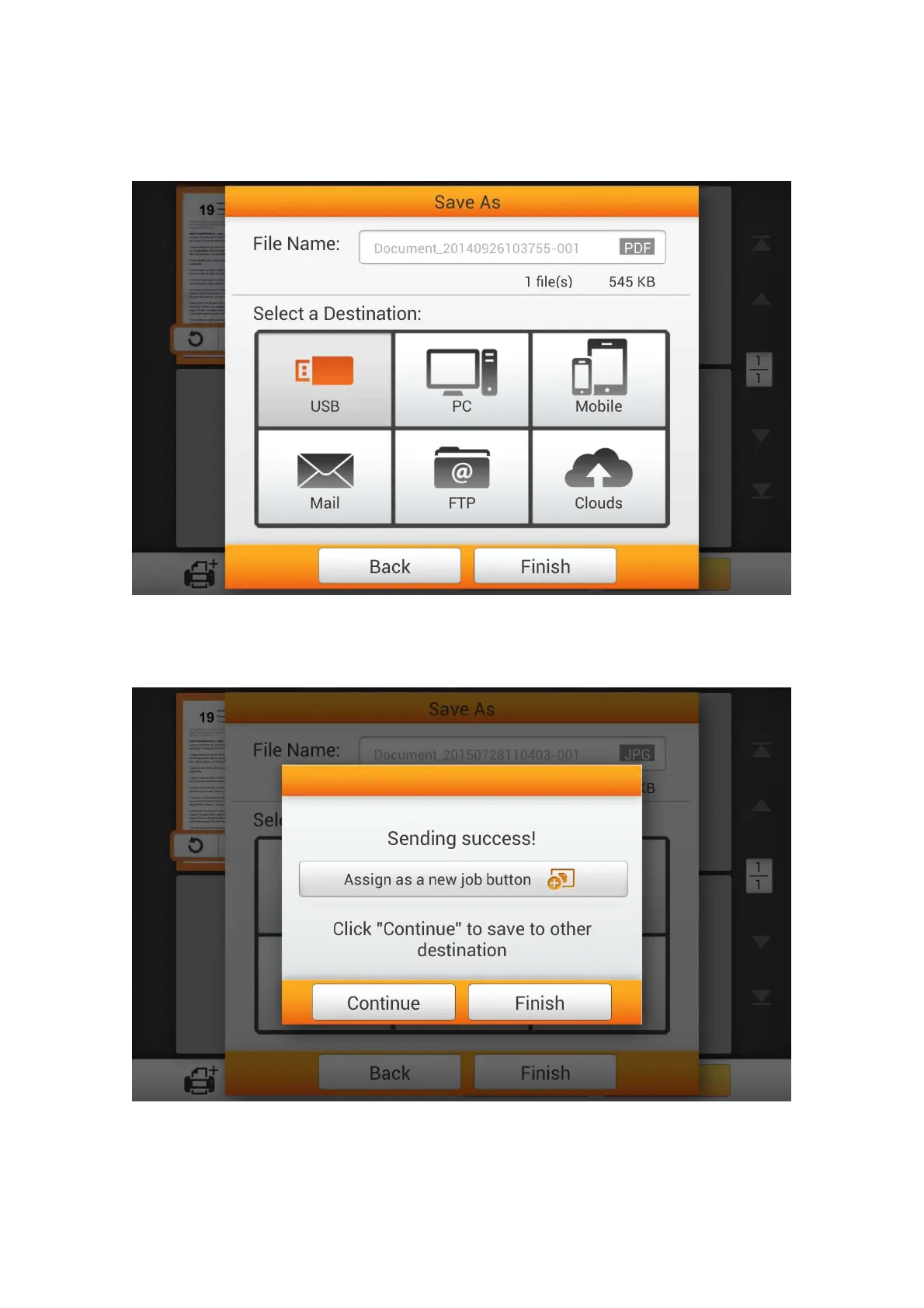 Tap on the USB button to save the scanned document to the USB flash drive.