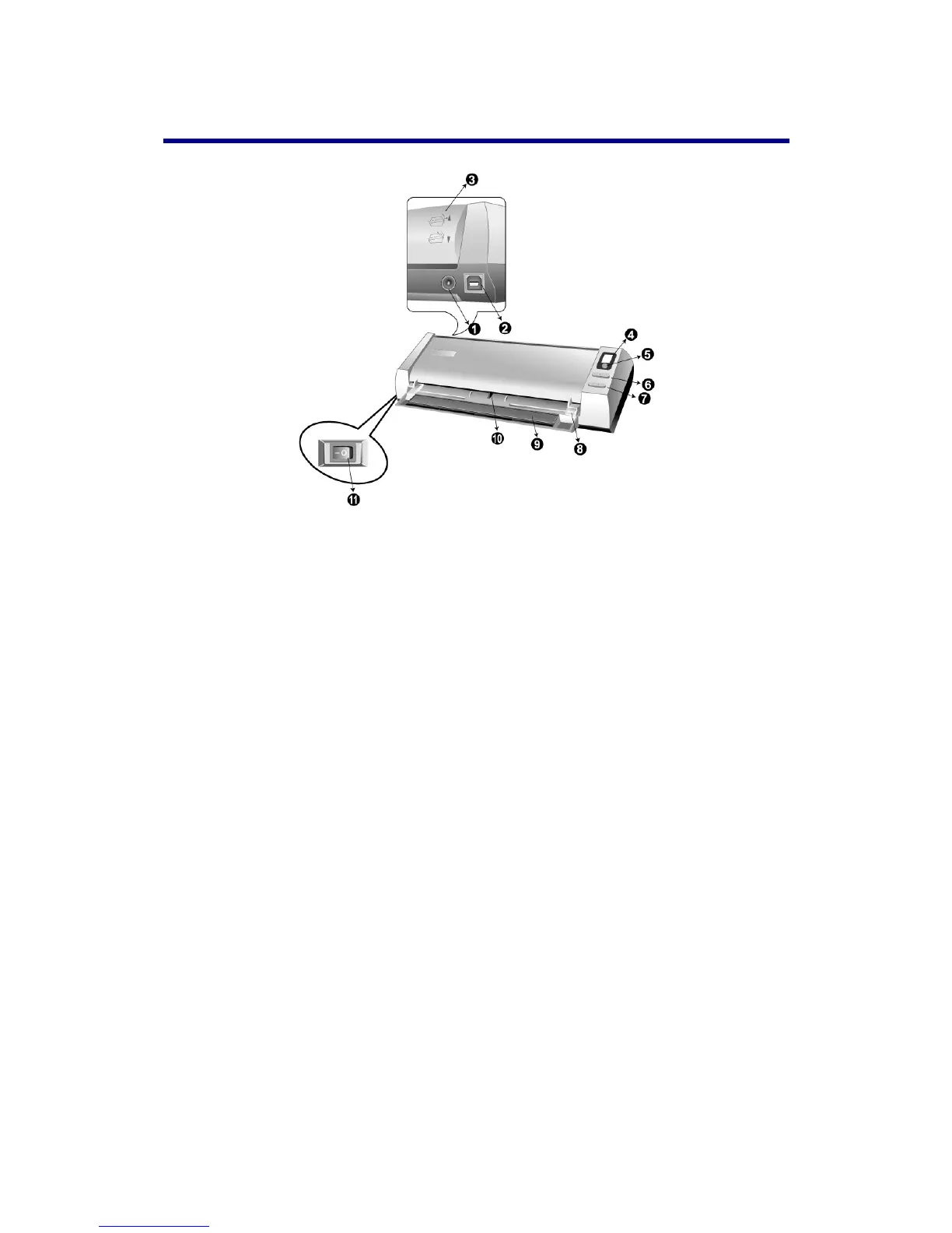 2. USB Port: It connects the scanner to a USB port on your computer by the included