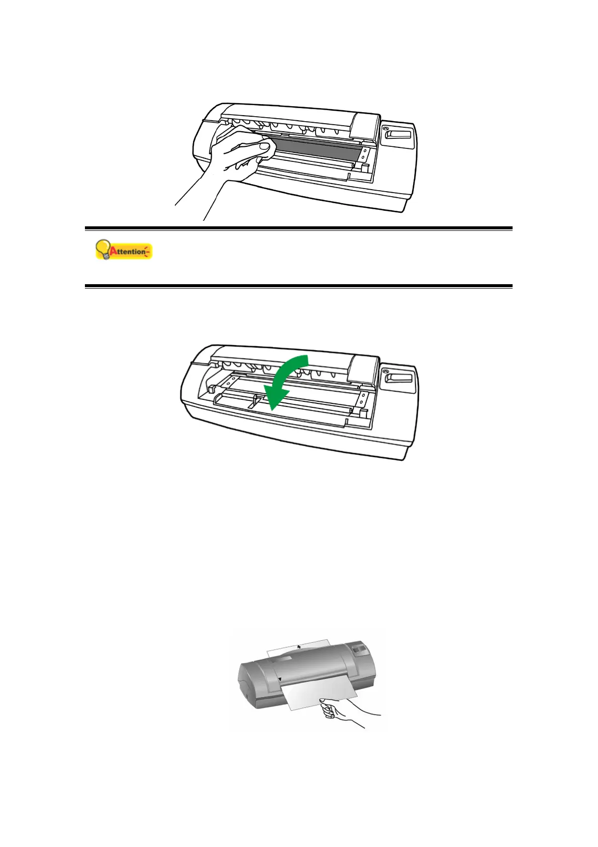 1. Insert the special calibration sheet face up into the page feed slot of the