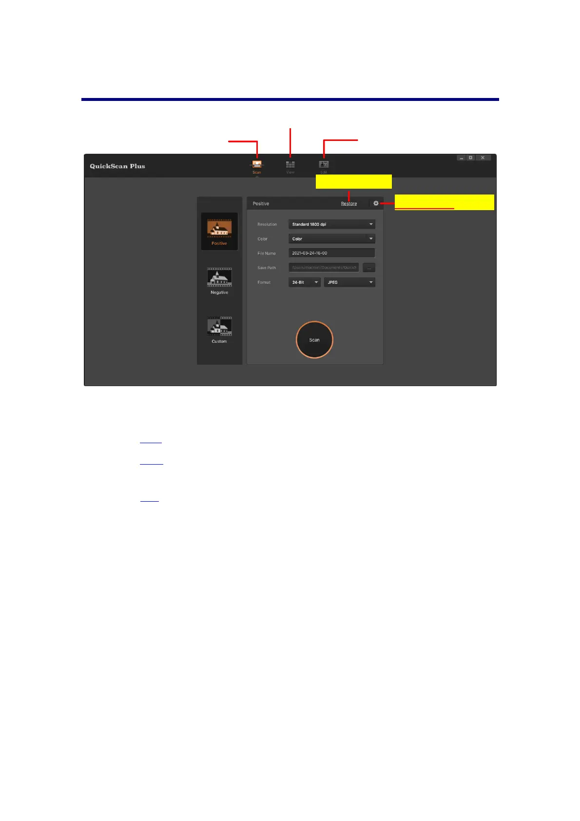 The[Scan]screen:The[Scan]screeniswhereyousetyourscanningparameters.