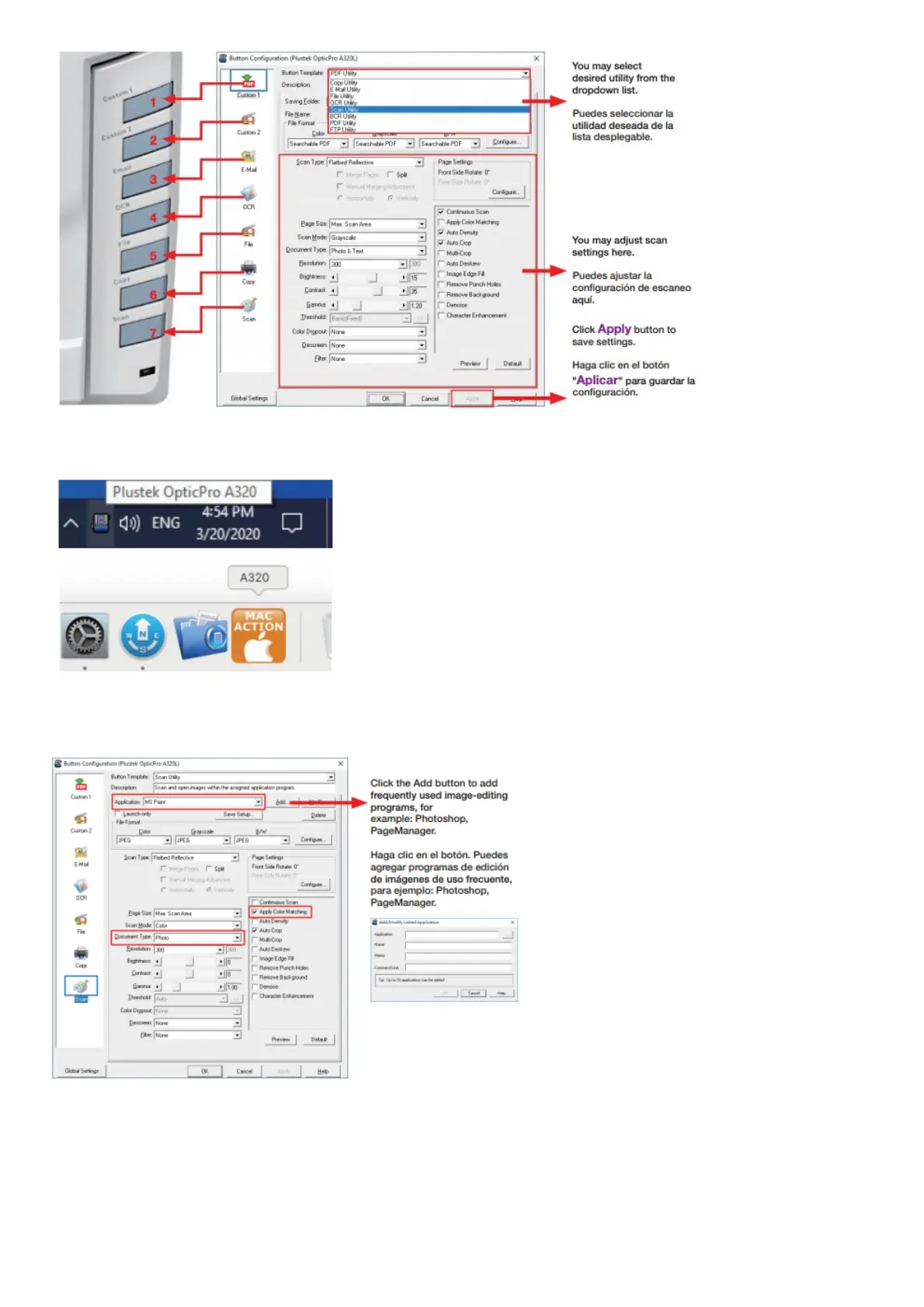 Plustek OpticPro Series - Button Configuration; Scan Button (Graphics); File Button