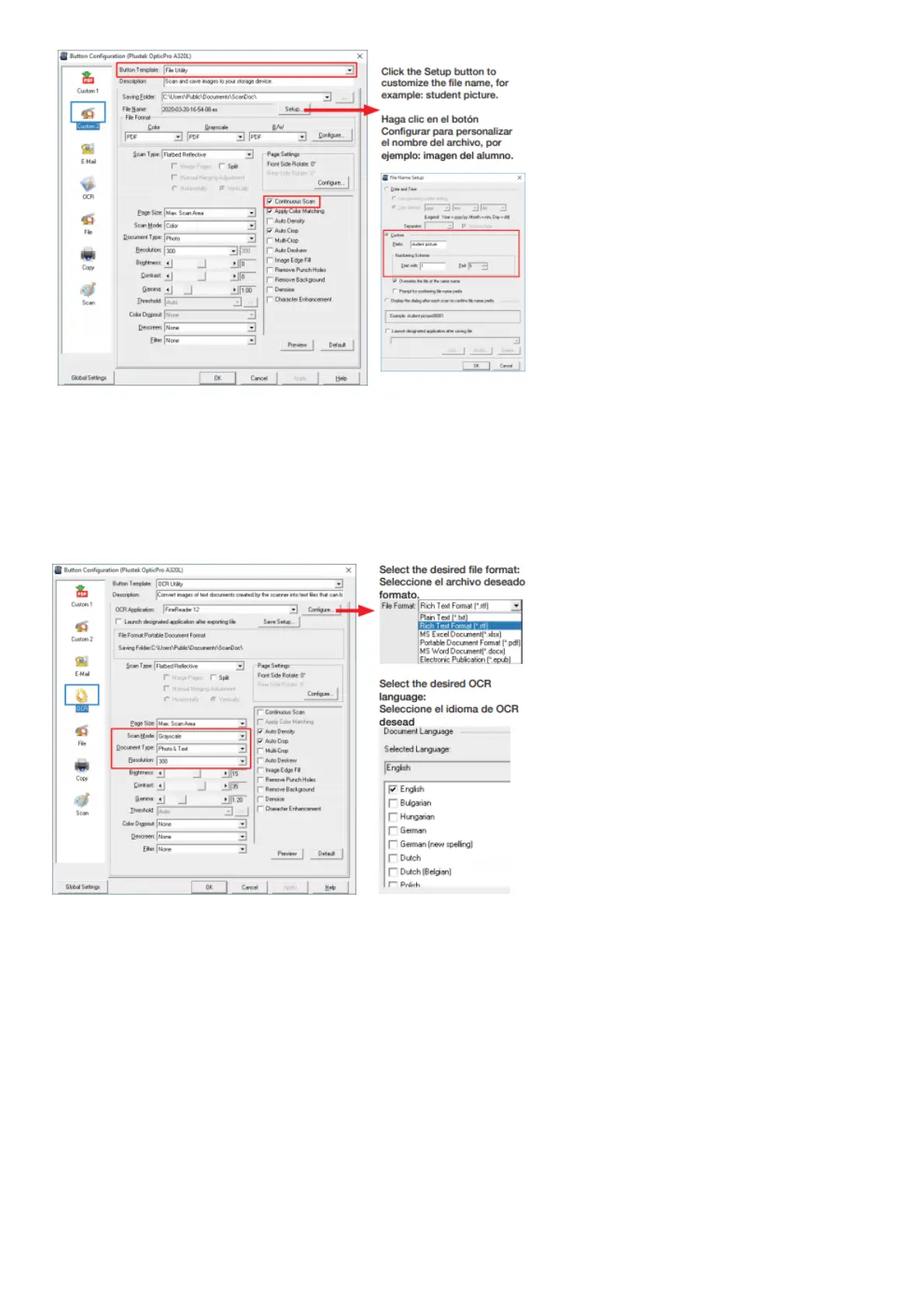 Plustek OpticPro Series - OCR Button