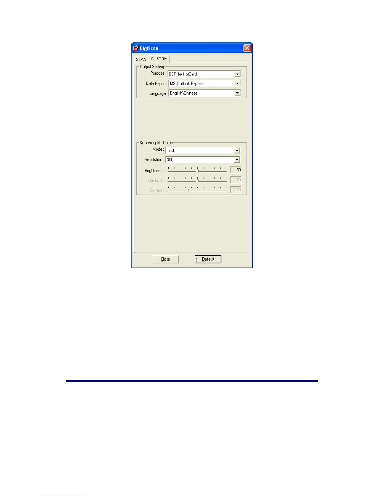 5. Click the Close button to save the final settings and exit the DigiScan window.