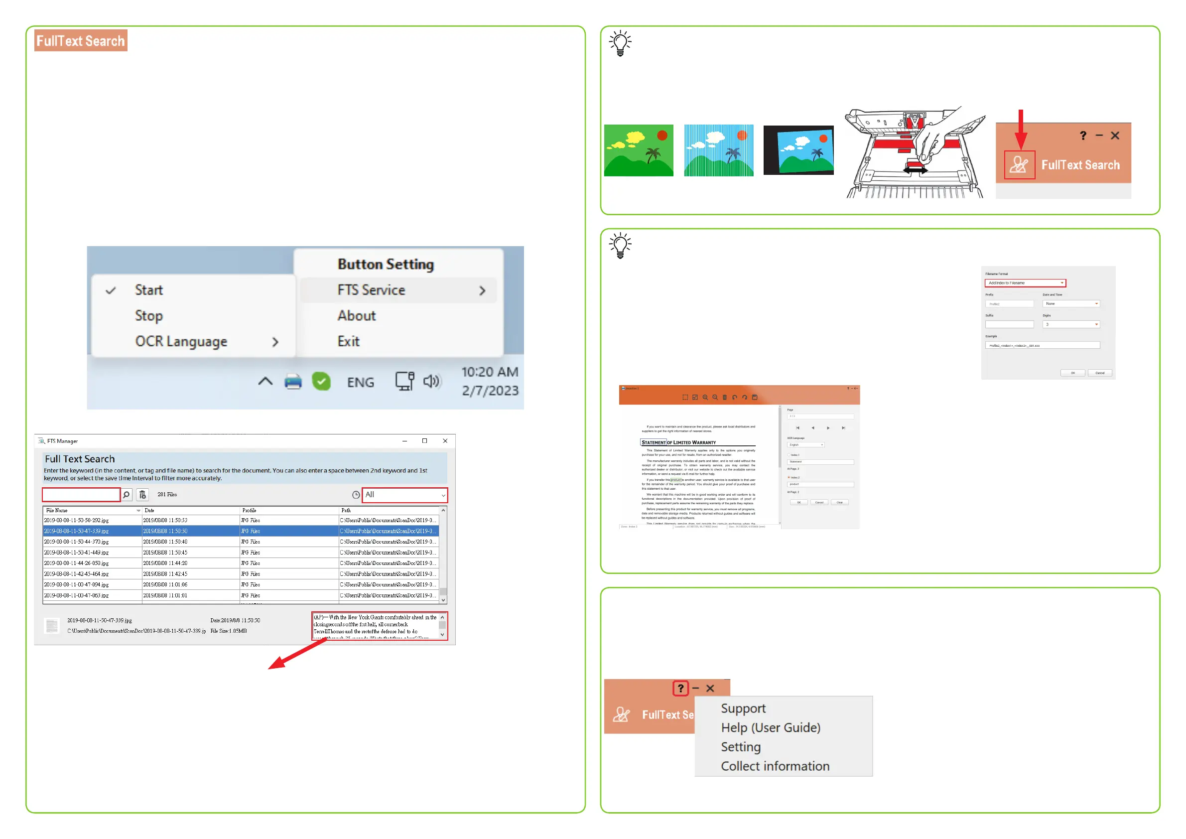 Enable the function by right-click DocAction II icon on the system tray, select FTS Service > Start.