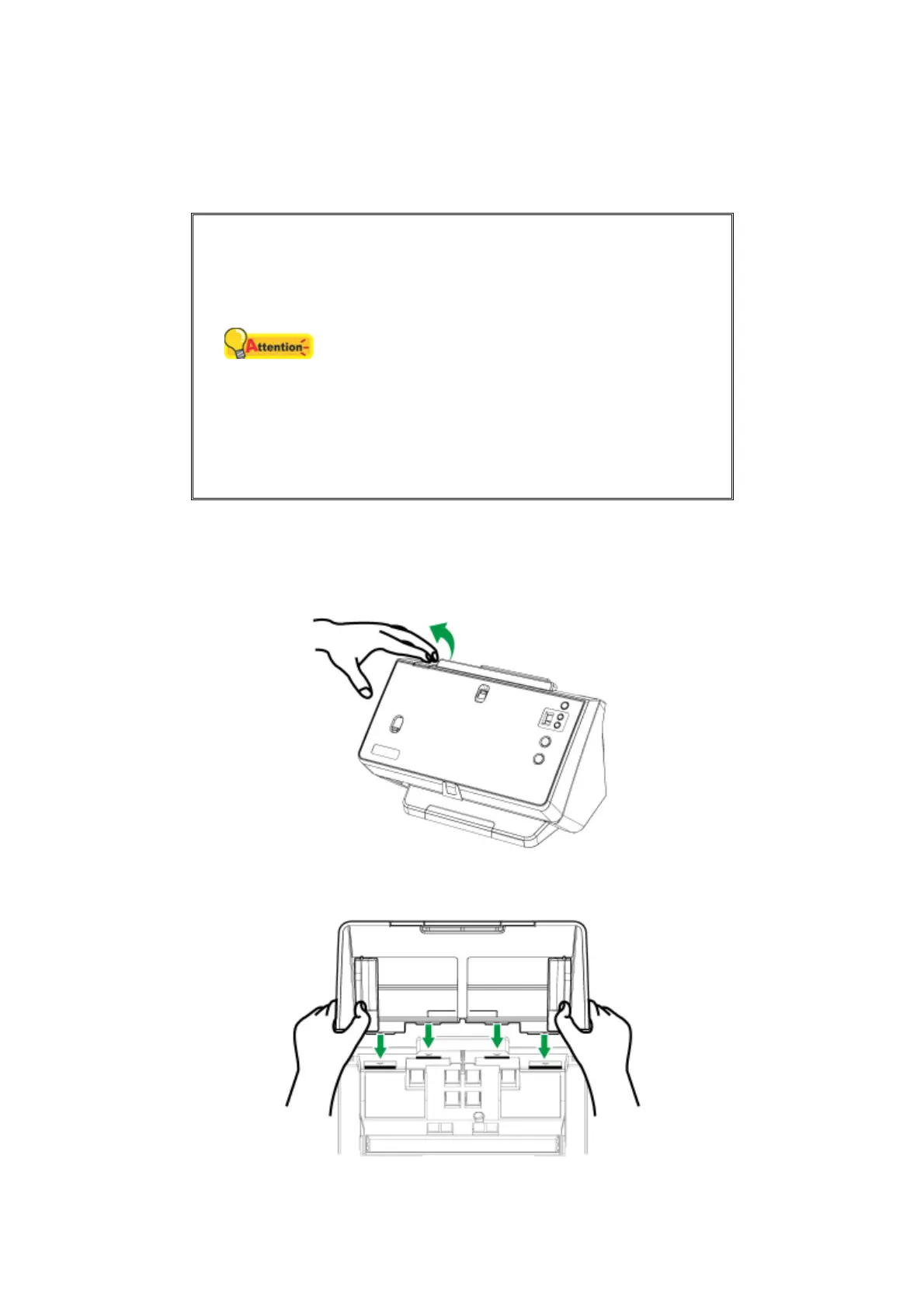 1. Open the ADF cover by pulling the lever, and get the paper chute ready.