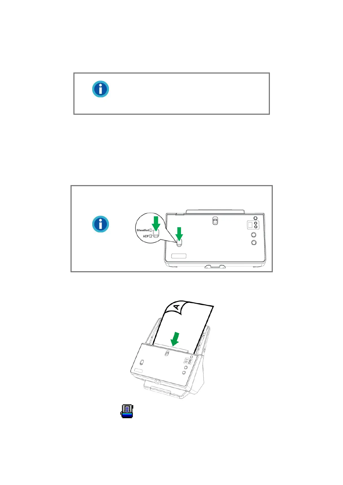 1. Load a document headfirst and face down into the ADF with the text side facing the