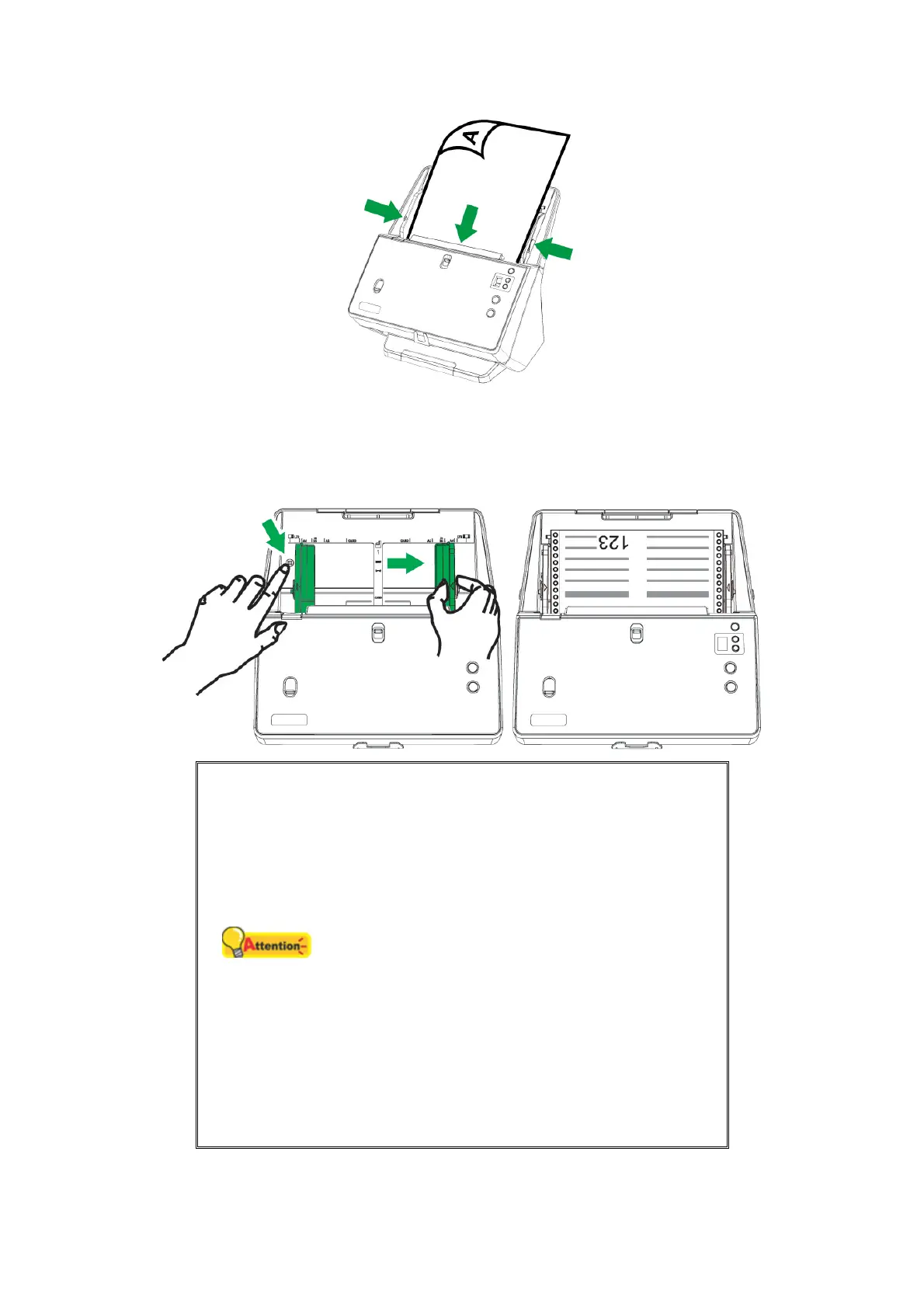 4. When you scan continuous form paper, slide the paper width sliders fully