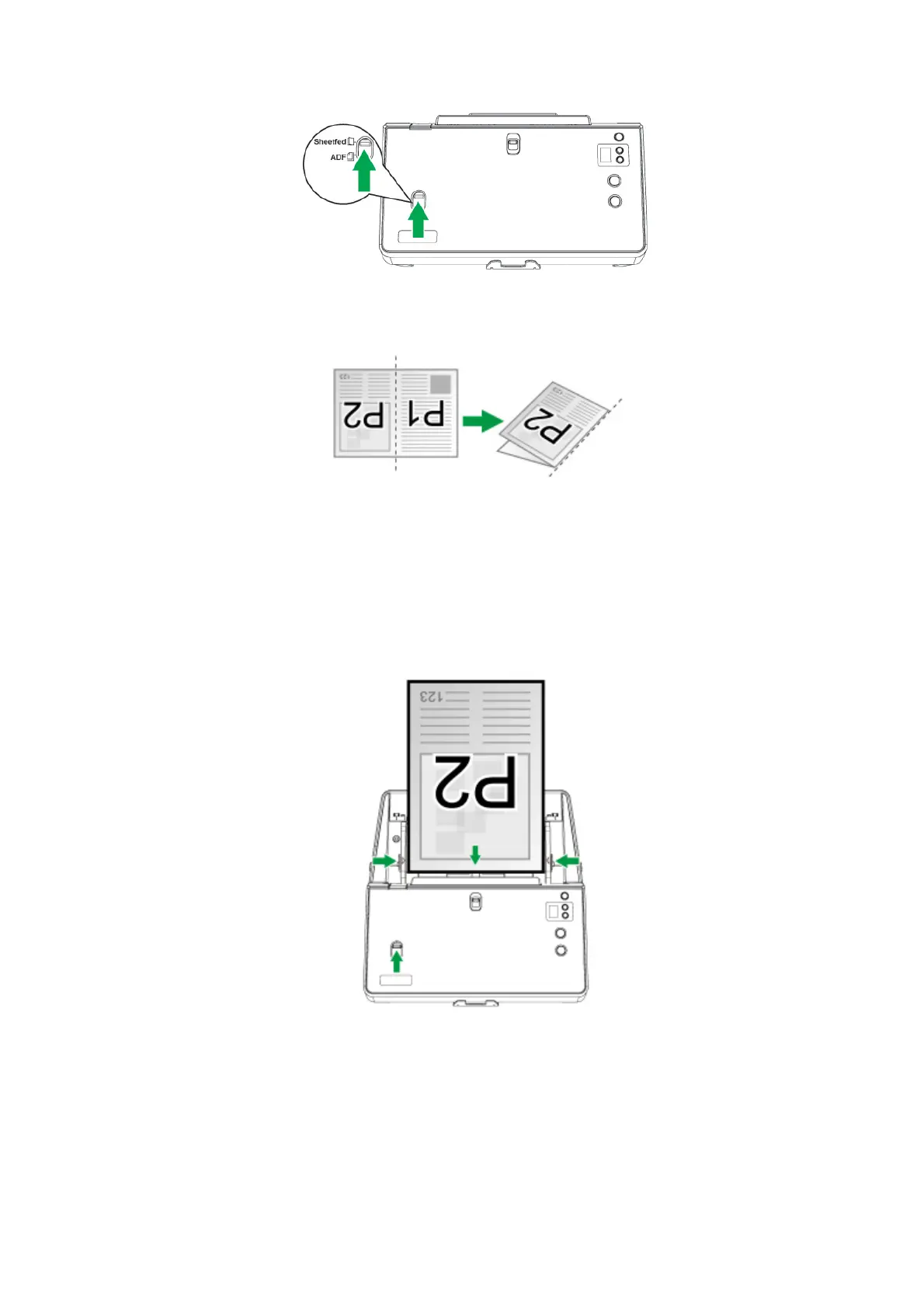 2. Load the document, headfirst and face down, toward the center of the ADF