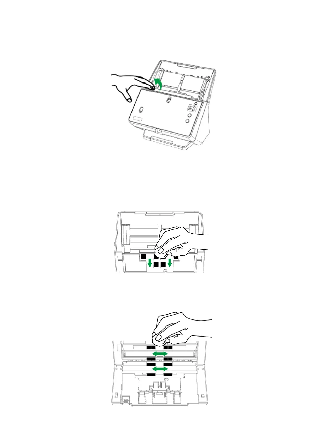 Wipe the pick rollers and separation rollers from top to bottom (in the direction