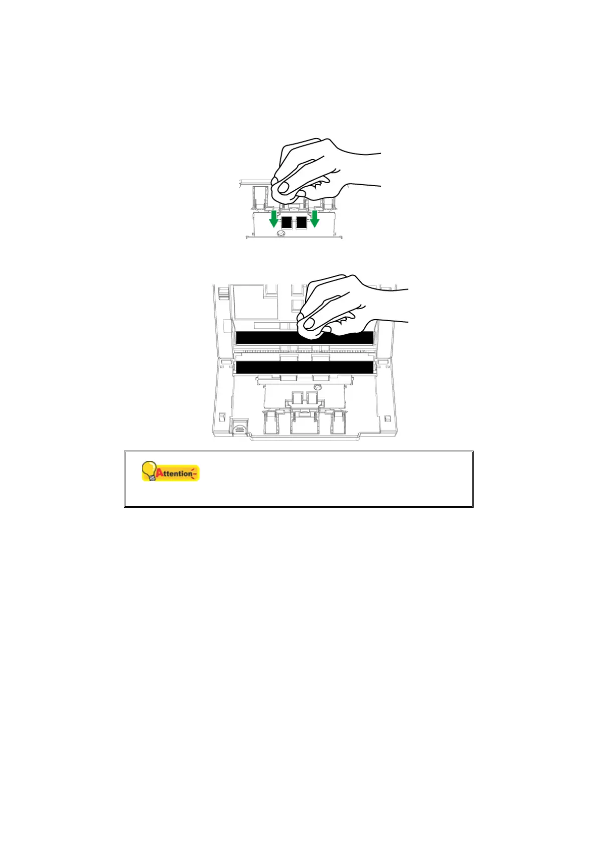 Wipe the friction rollers from top to bottom (in the direction of arrow shown in