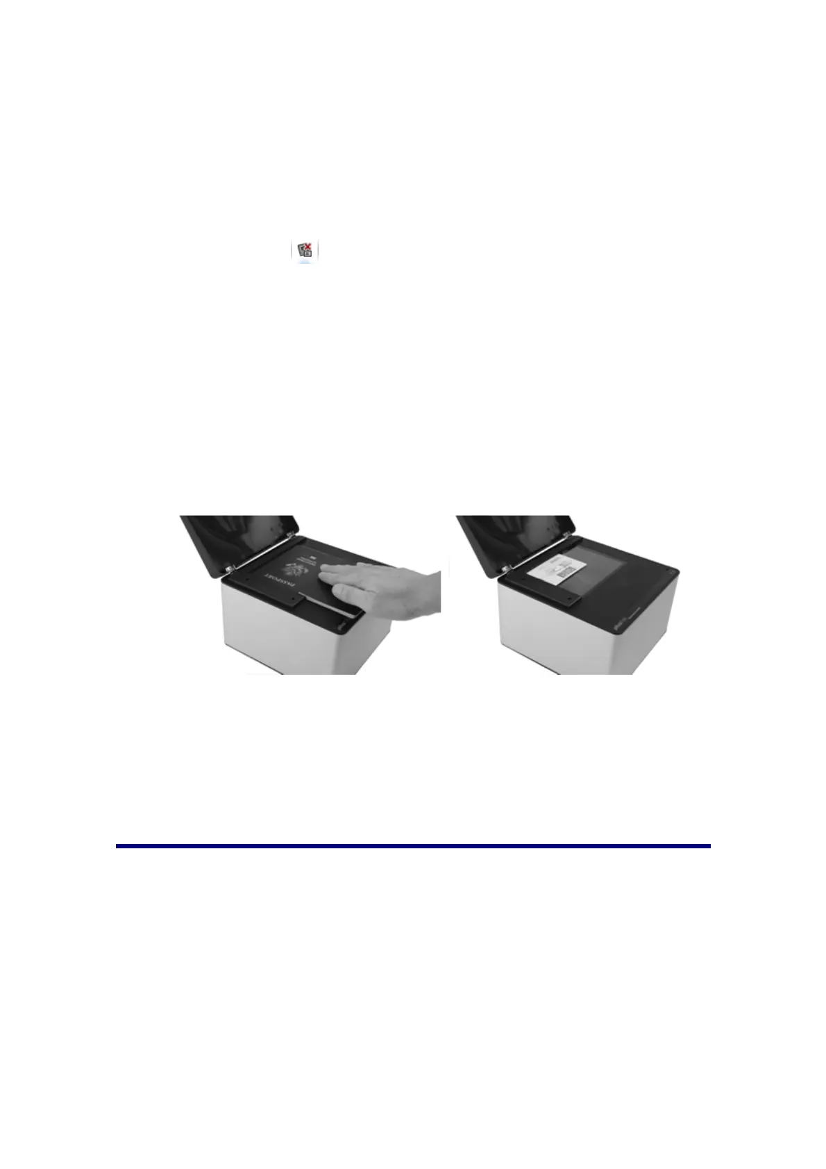 glass. Align the passport or ID card along with the alignment bar. Gently close