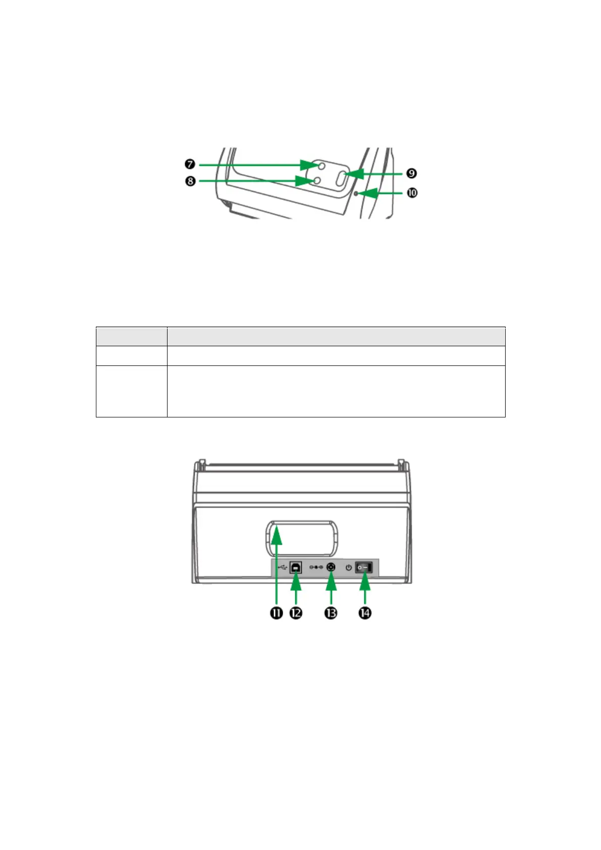 10. POWER LED—indicates the scanner status.