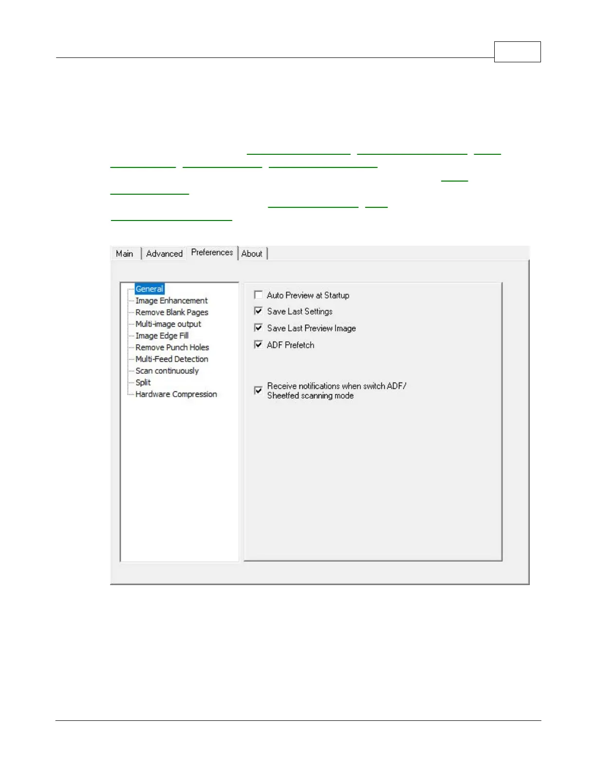 Preferences Tab provides you with additional options to tailor the TWAIN interface