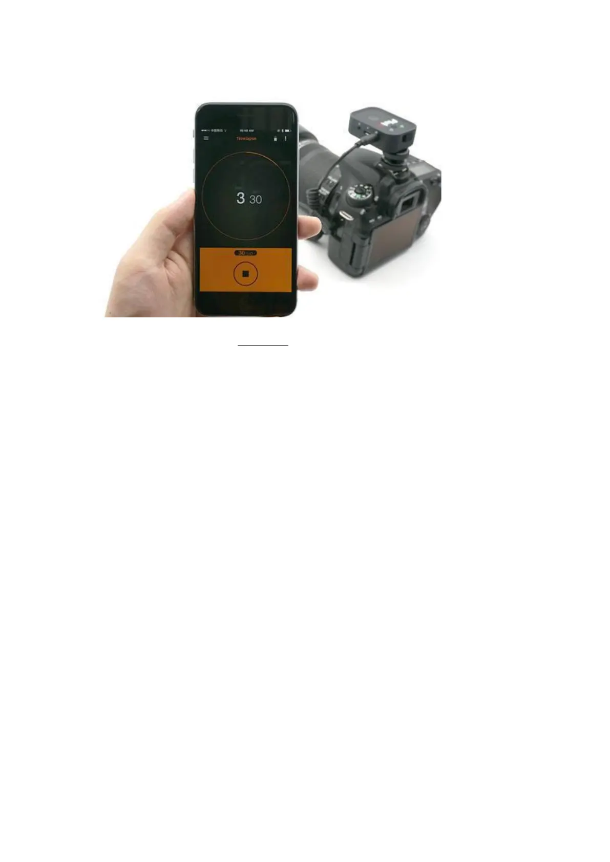The Pluto Trigger is now running Timelapse program. The app shows the number of shots