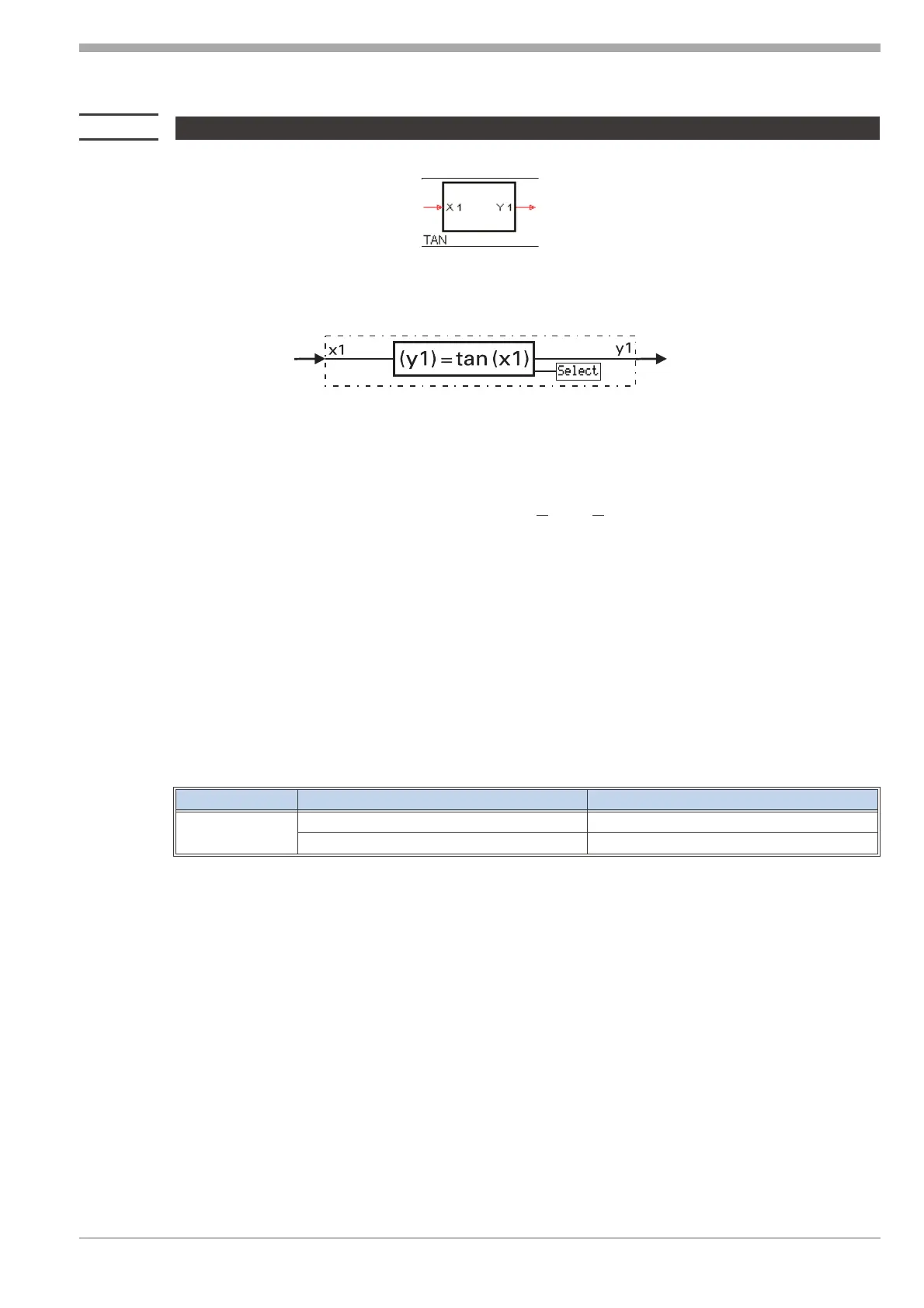 The function provides the tangent of the input value, i.e. x1 is the angle the tangent of which is calculated.