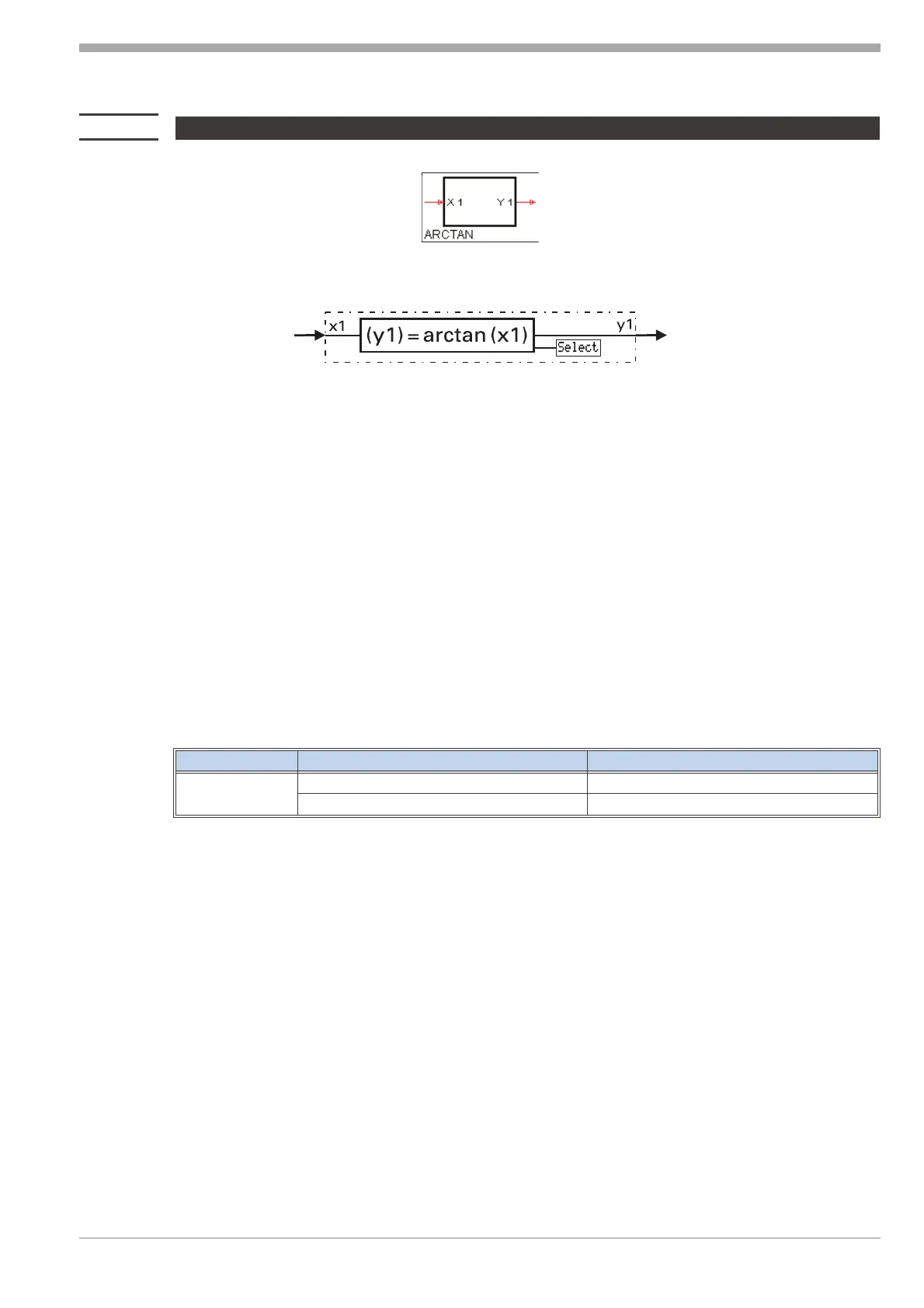 The function provides the arcus tangent of the input value, i.e. x1 is the angle the arcus tangent of which is calcu