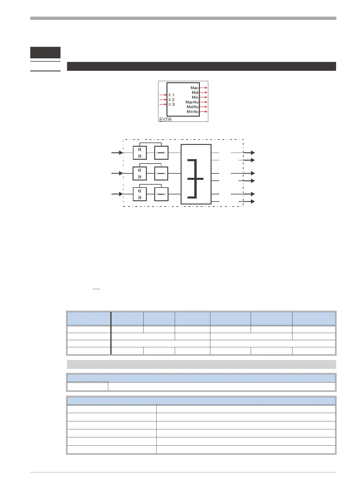 Analog inputs x1, x2 and x3 are sorted according to their instantaneous values and provided at outputs Max,