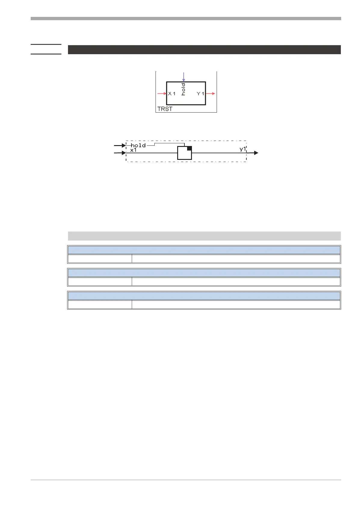 With control input hold set to 1, instantaneous input value x1 is stored and output at y1. With control input hold set to
