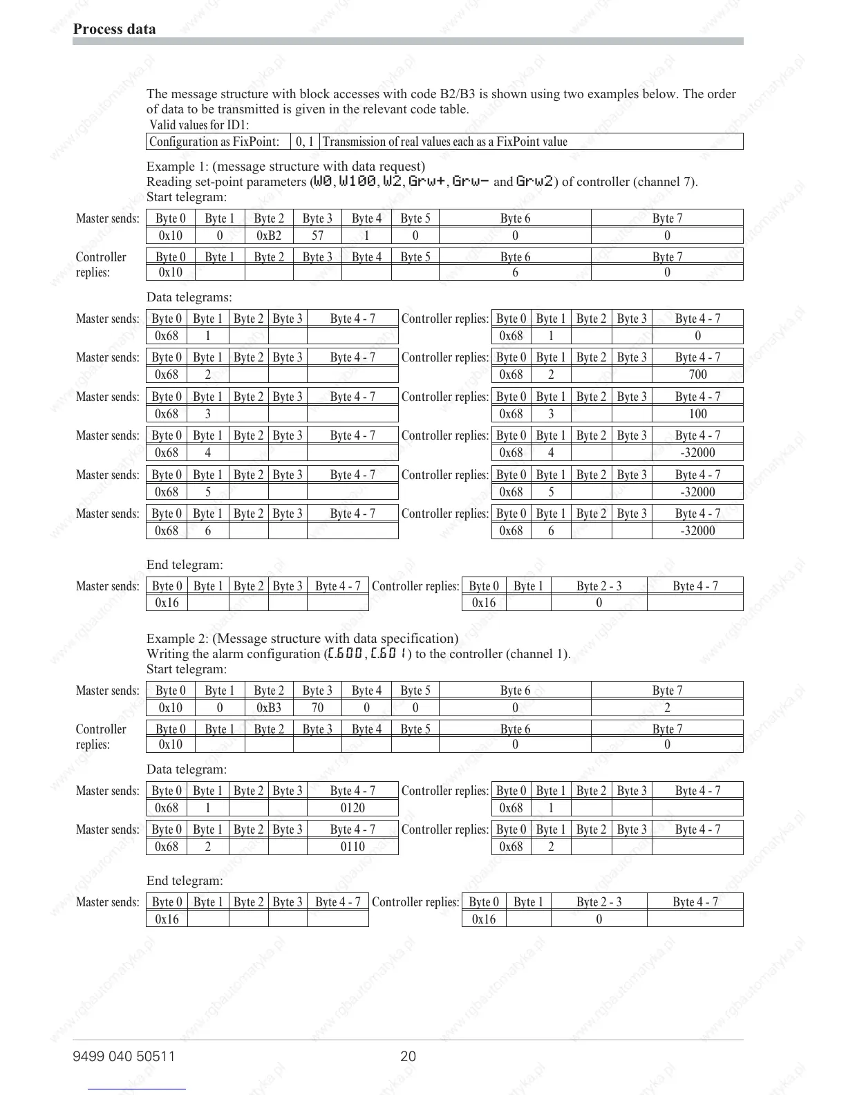 The message structure with block accesses with code B2/B3 is shown using two examples below. The order