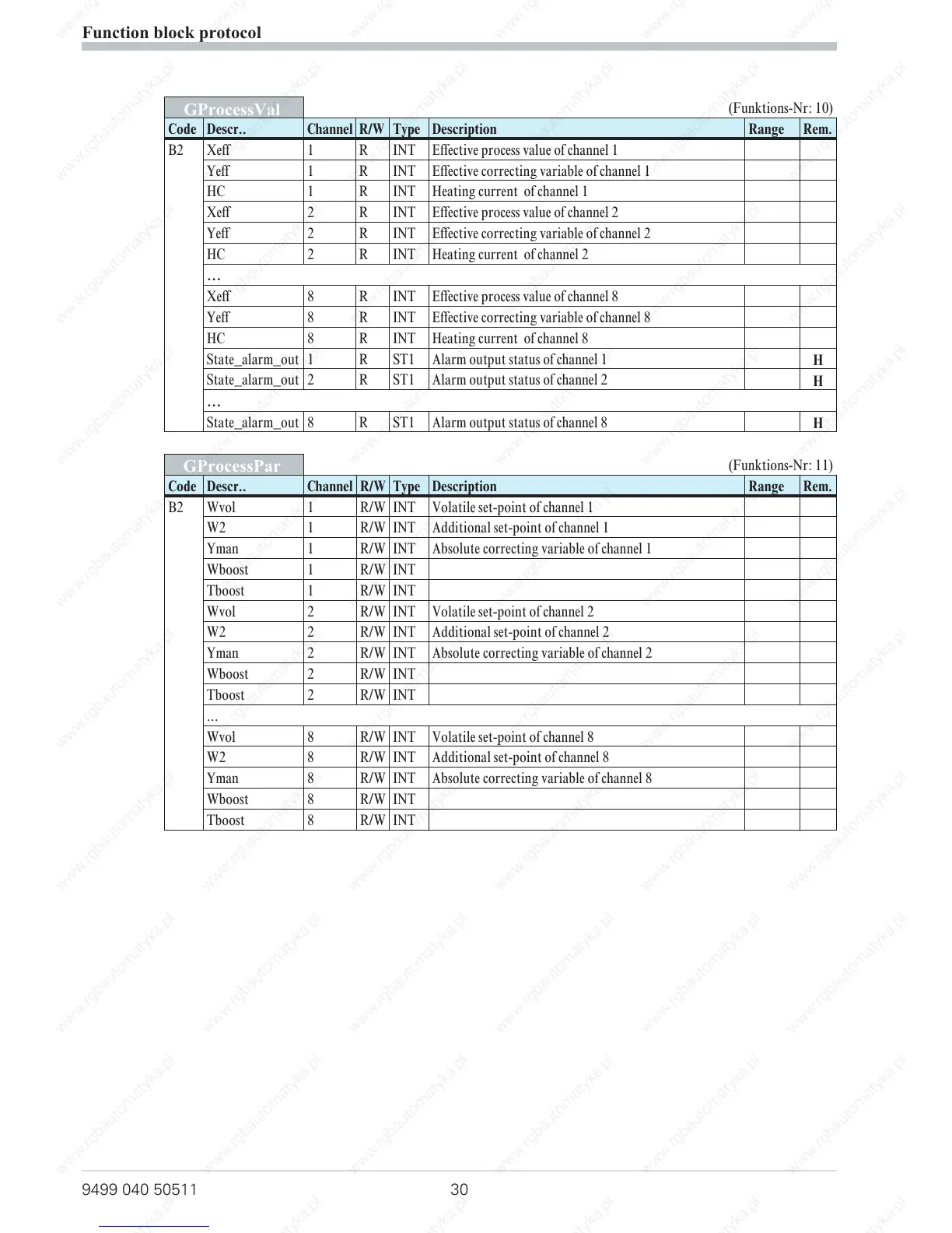 B2 Wvol 1 R/W INT Volatile set-point of channel 1