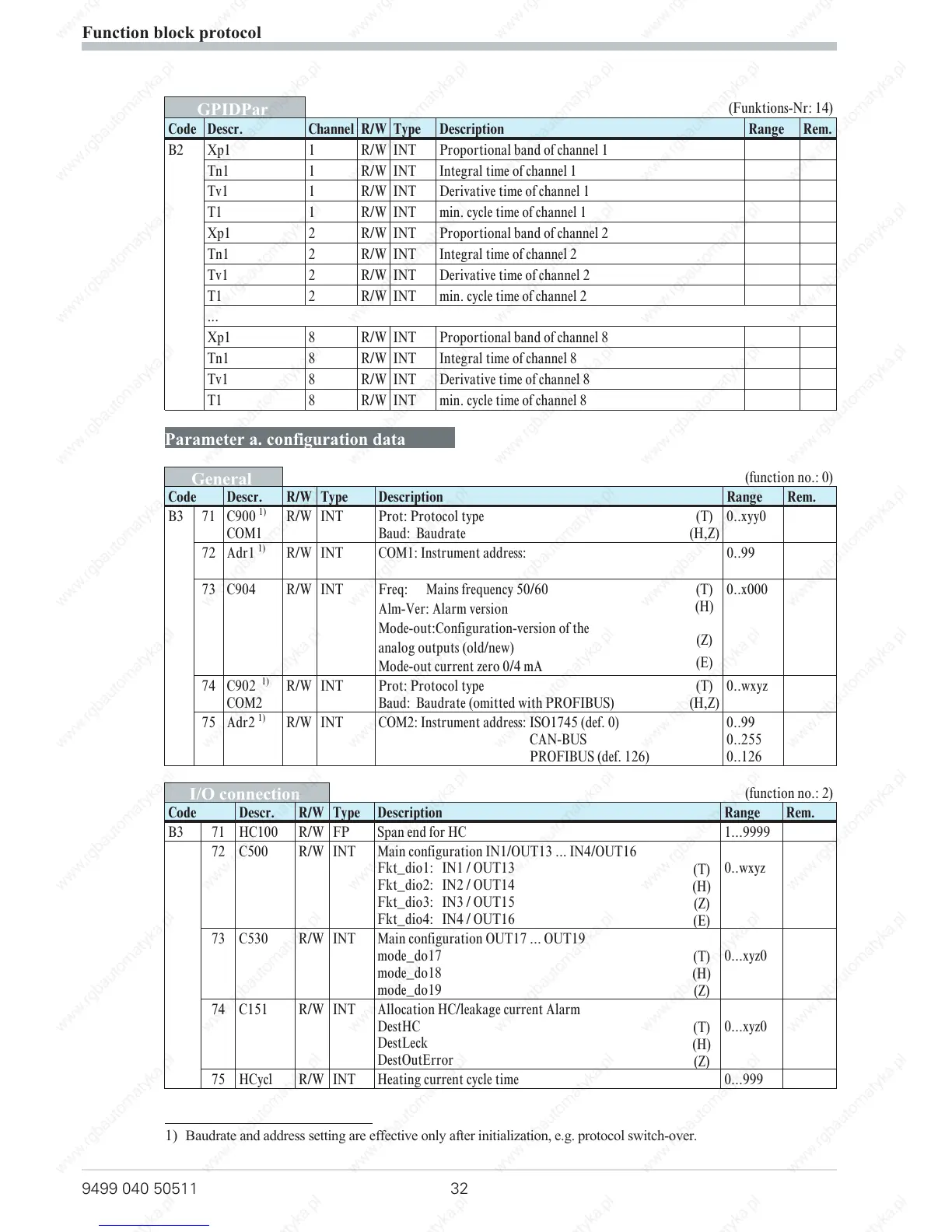 Code Descr. Channel R/W Type Description Range Rem.