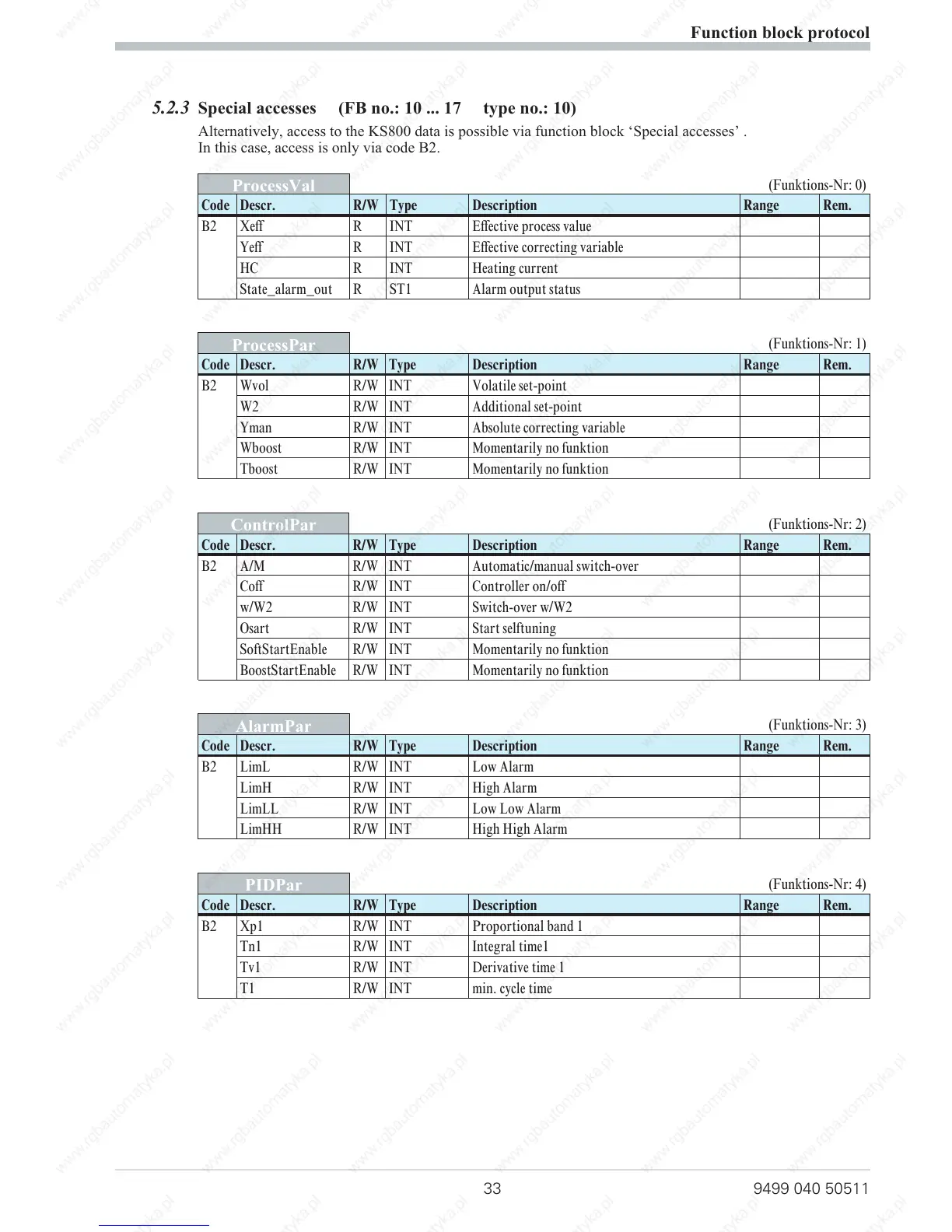 Alternatively, access to the KS800 data is possible via function block ‘Special accesses’ .