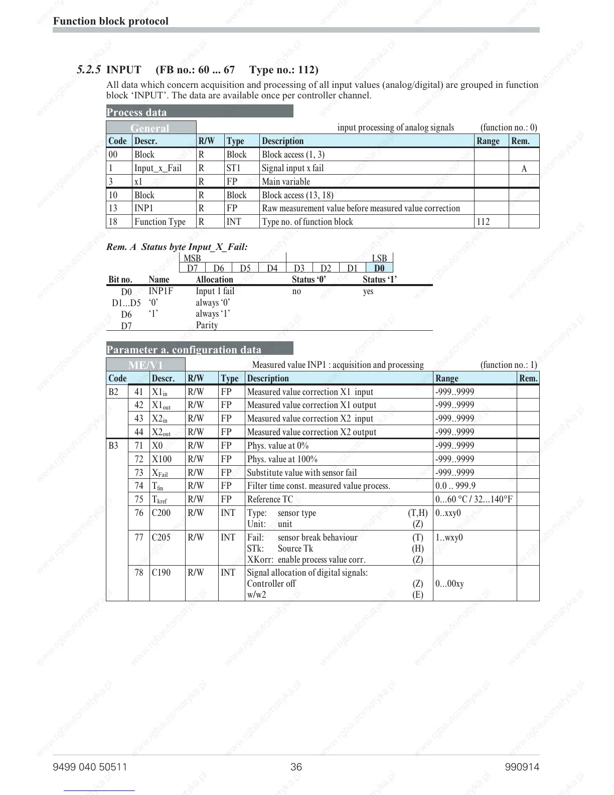 5.2.5 INPUT (FB no.: 60 ... 67 Type no.: 112)