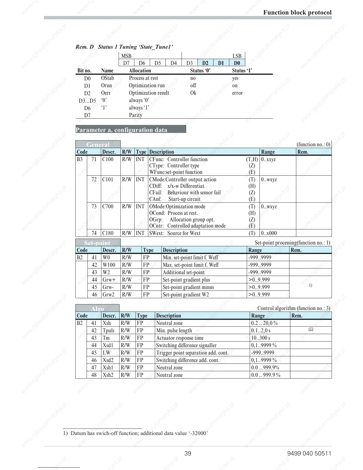1) Datum has swich-off function; additional data value ‘-32000’