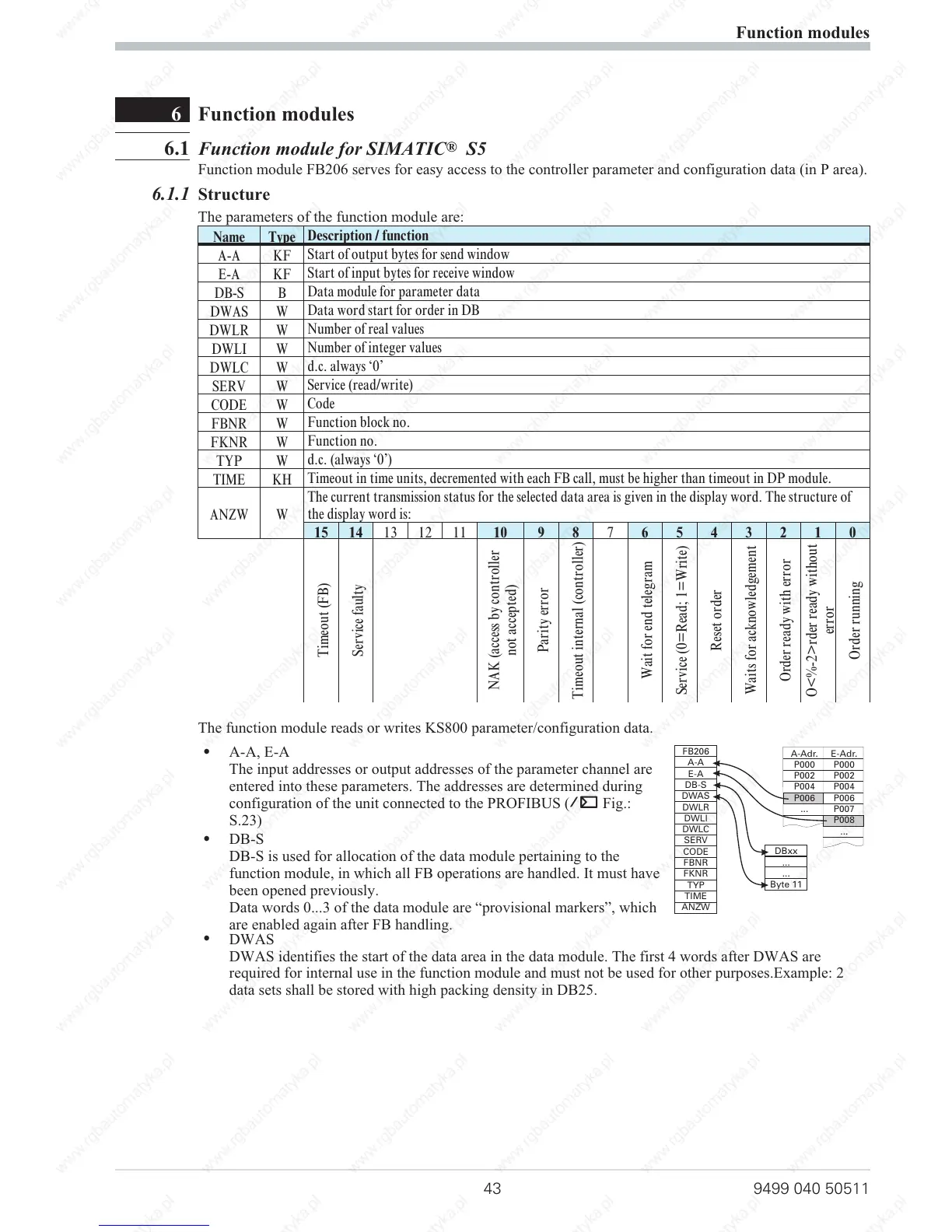 Function module FB206 serves for easy access to the controller parameter and configuration data (in P area).