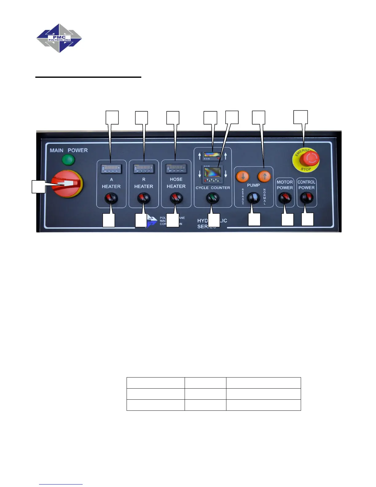 R. Control Power - Turns ON and OFF the control power to the complete electrical