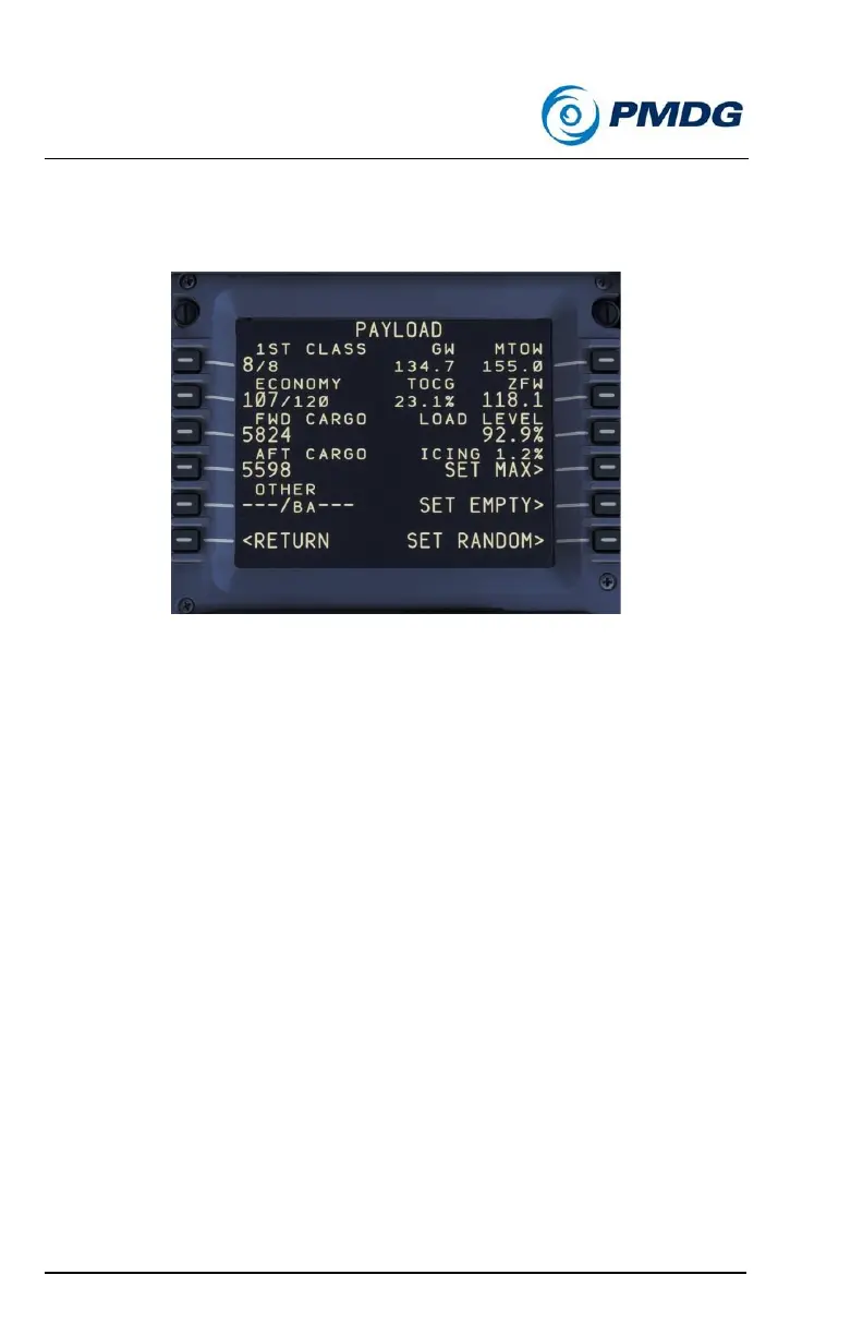 The PAYLOAD menu allows you to change the aircraft loading as desired