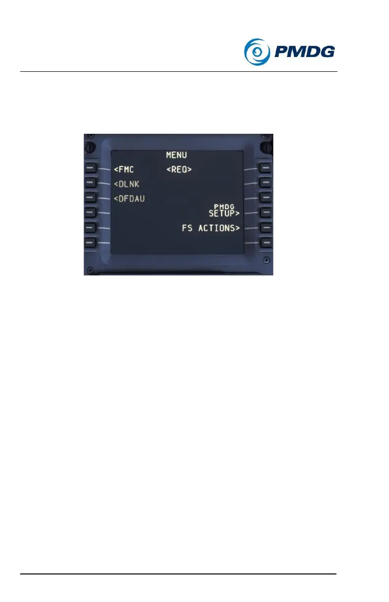 PMDG SETUP> and FS ACTIONS> prompts. These options are the core