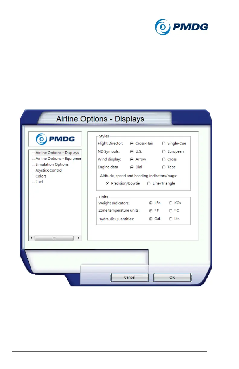 The PMDG Options menu for the PMDG MD-11 is shown below: