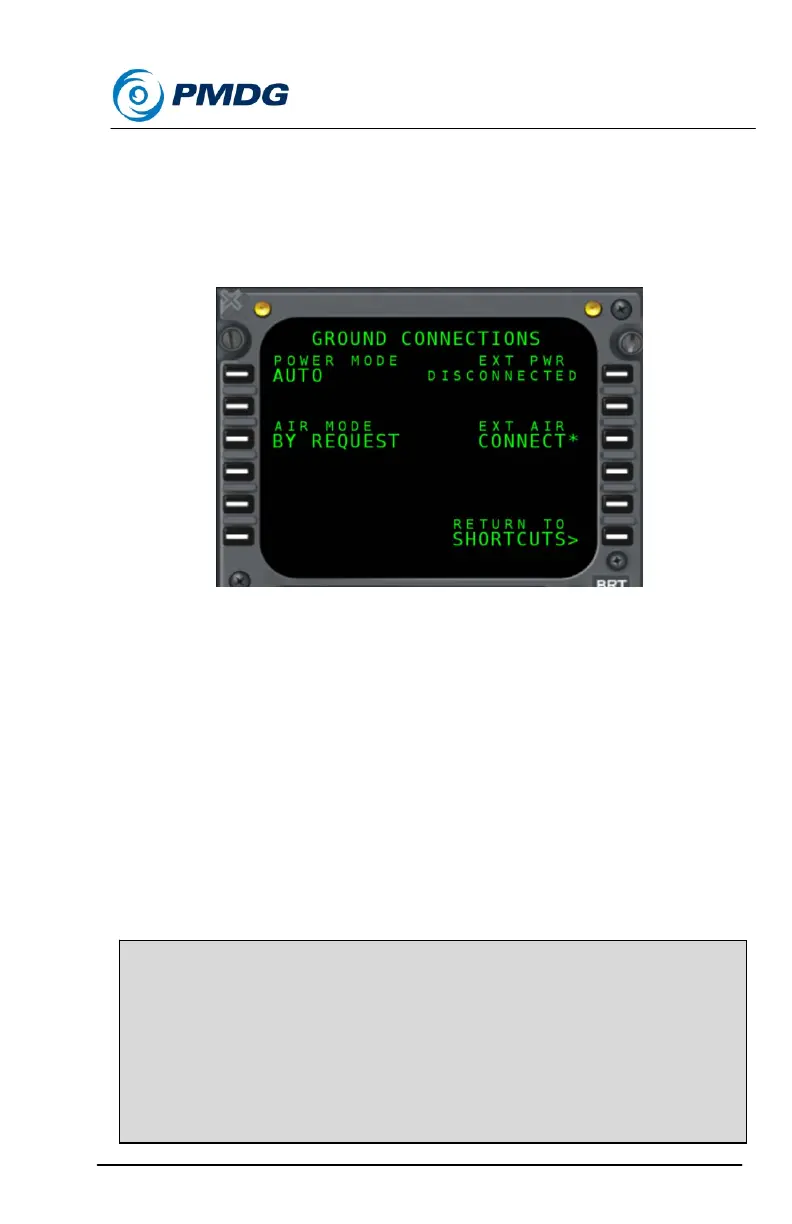MENU key on the MCDU the GROUND CONNECTIONS page will