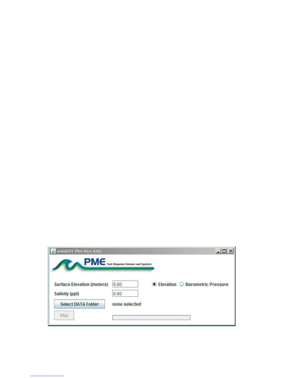 Begin the program operation by clicking “miniDOTPlot.jar”. The program presents the screen