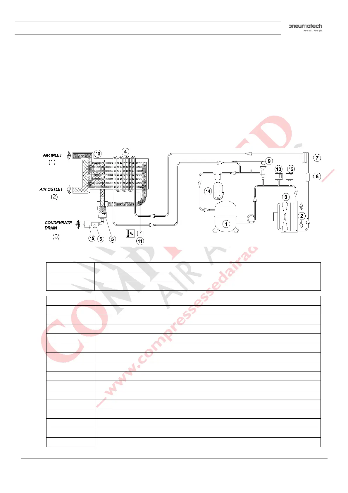 The refrigerant enters evaporator (4) where it withdraws heat from the compressed air by further