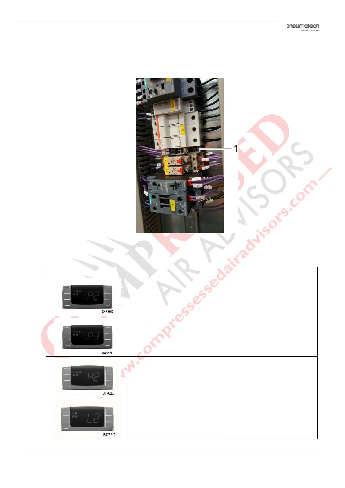 Pressure dewpoint too low Refer to the fault and remedies
