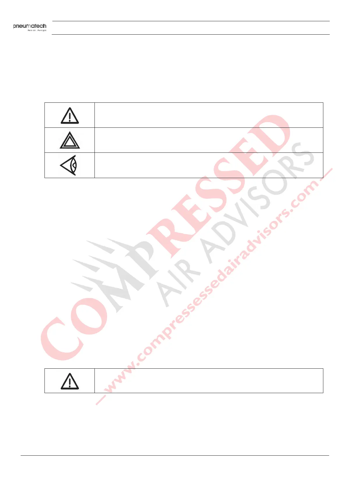compressed air must be adequately purified according to the applicable legislation and standards.