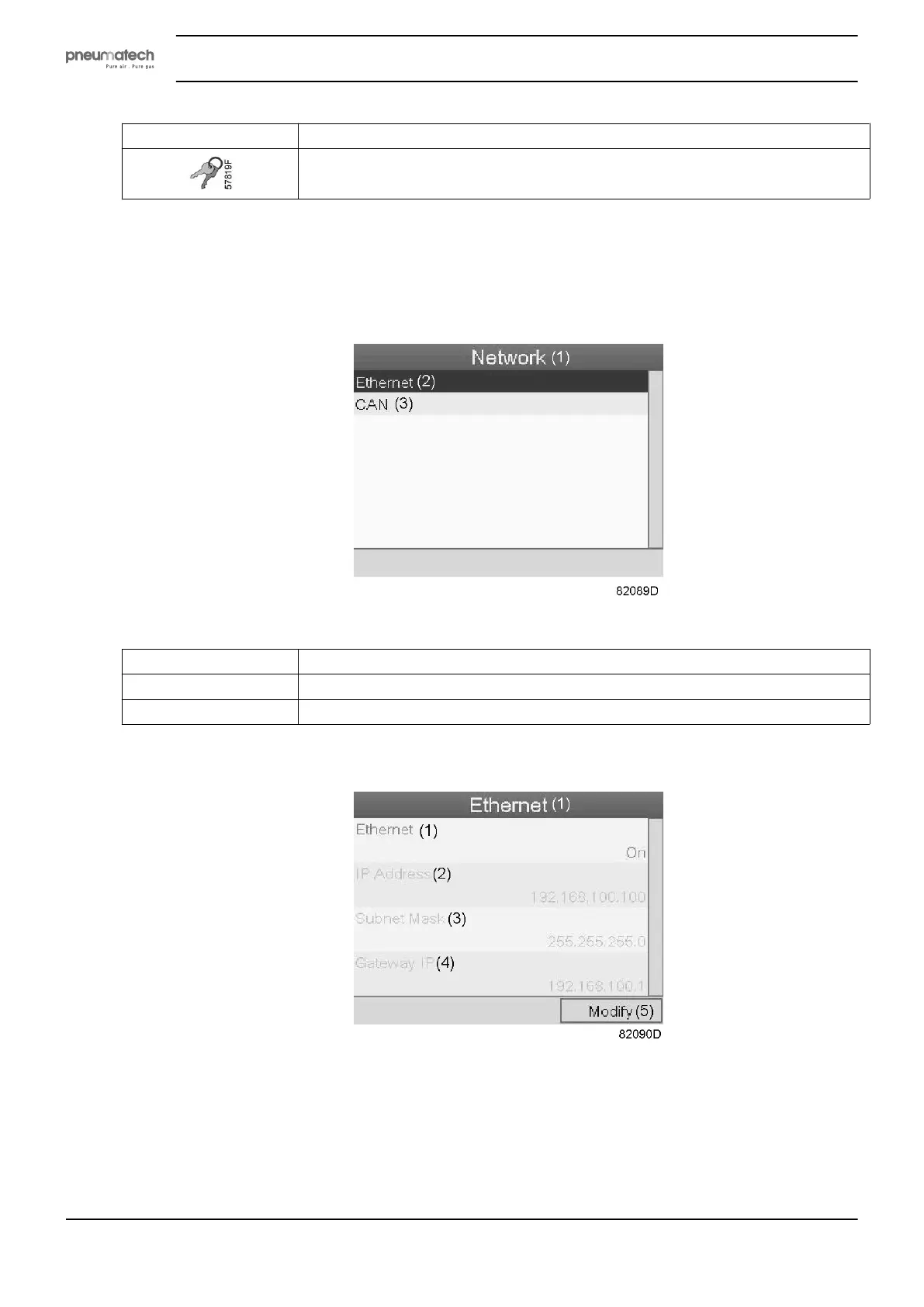 • Select the network settings icon as described above and press the Enter button (2). Following screen