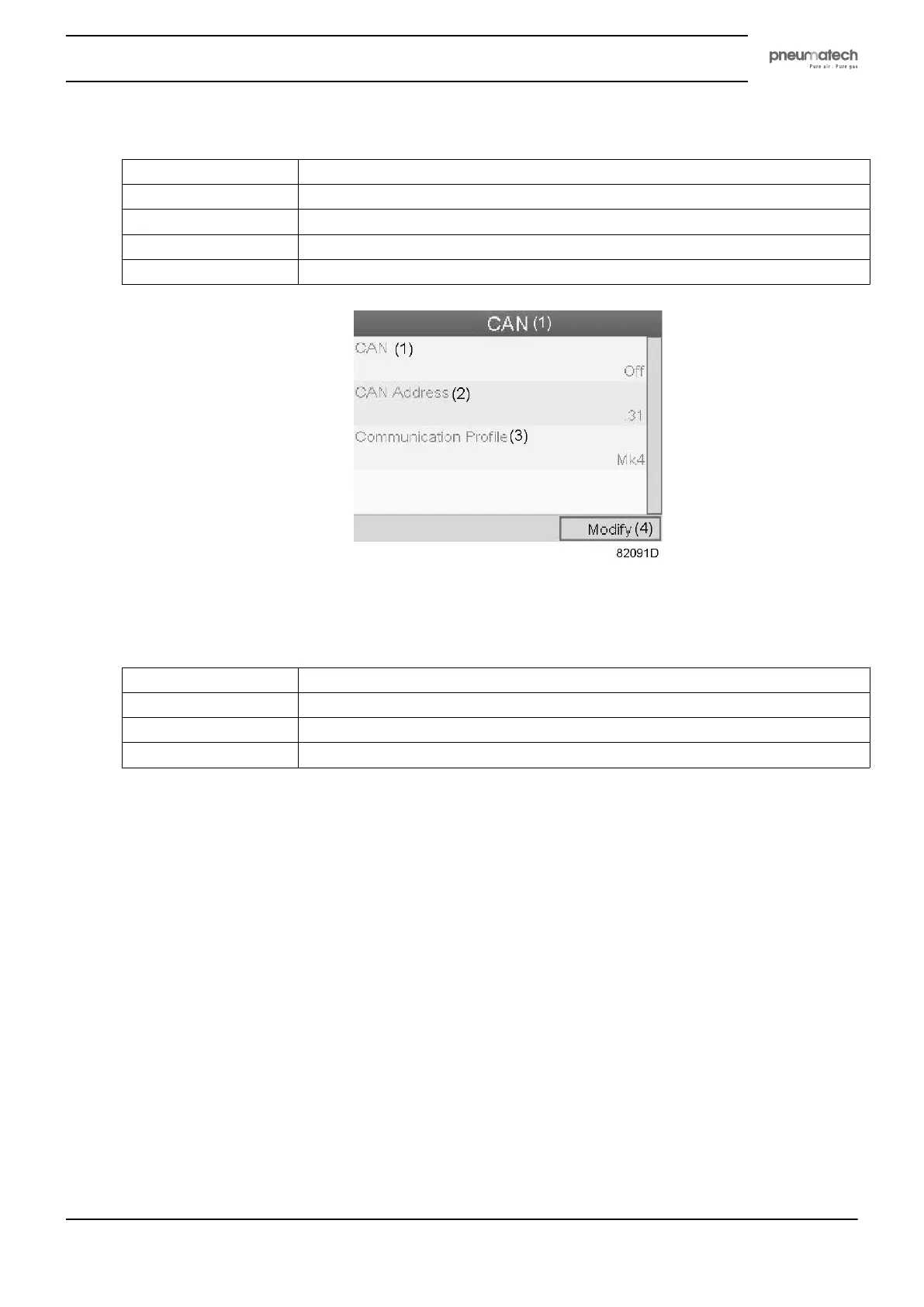 Screen for CAN settings