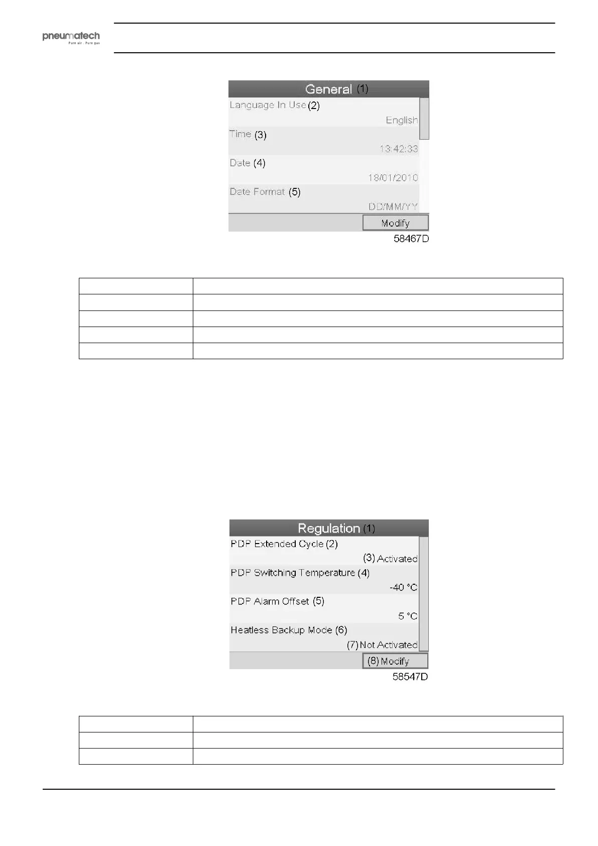• Select the Regulation icon as described above and press the Enter button (2). Following screen