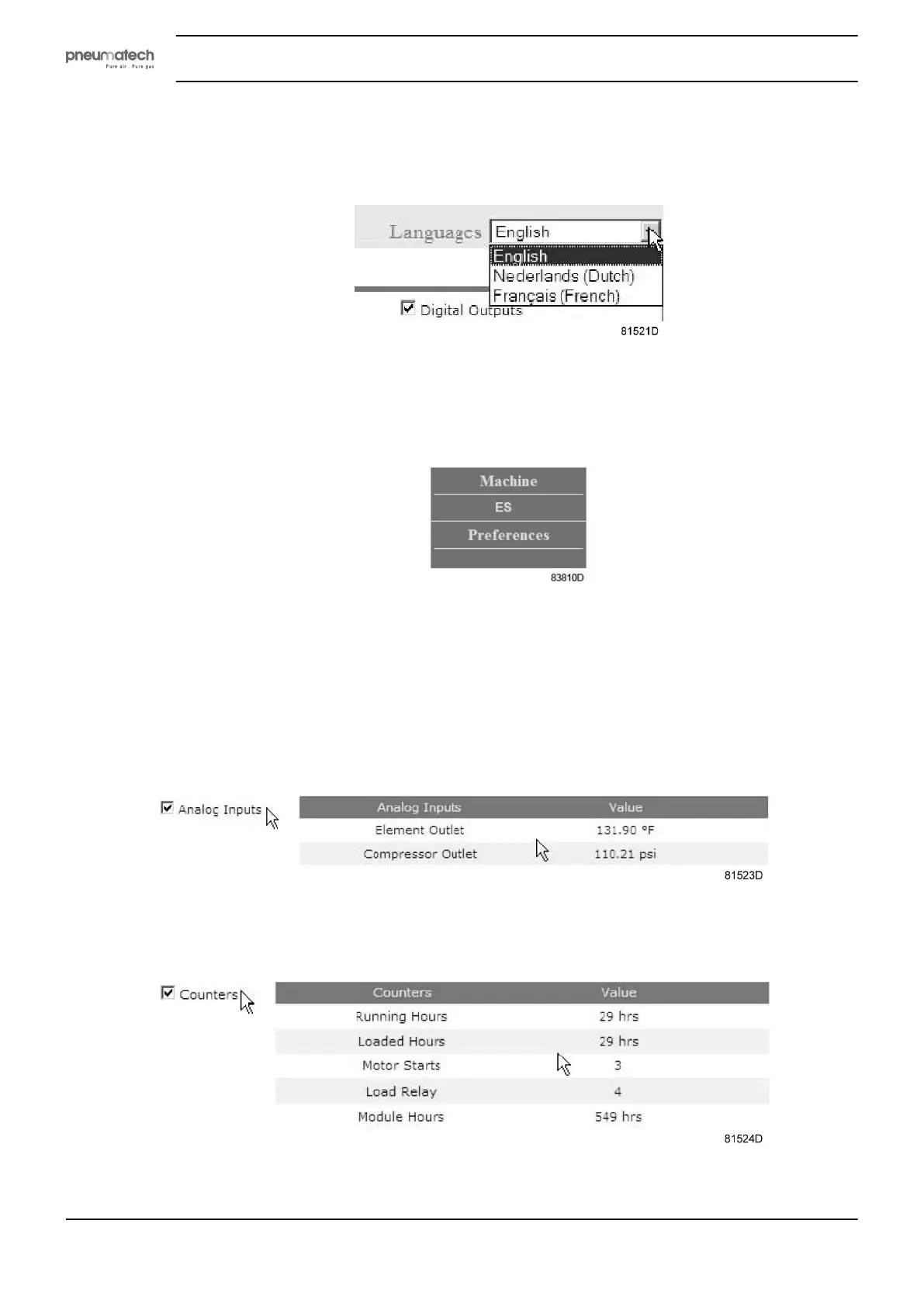 • The banner shows the unit type and the language selector. In this example, three languages are