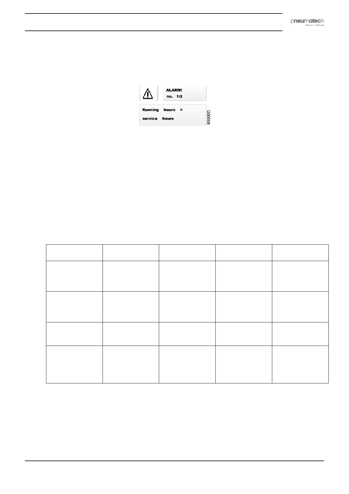 After one minute, if the acknowledged alarm is still active, the alarm display is shown again.