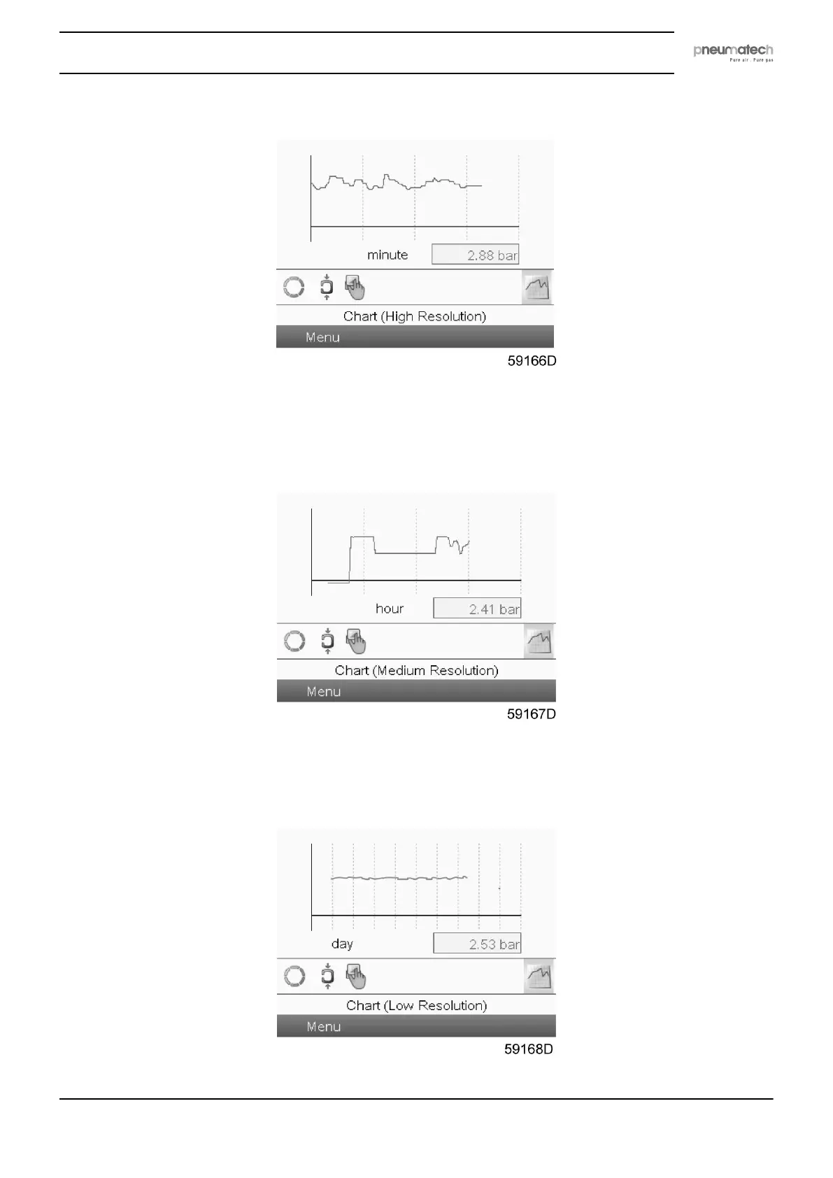 When Chart (High Resolution) is selected, the value of a parameter (in the example, the pressure