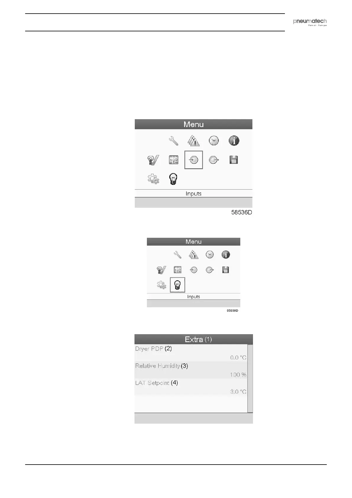 • Press the enter key (2). A screen showing the actual readings for the pressure dew point