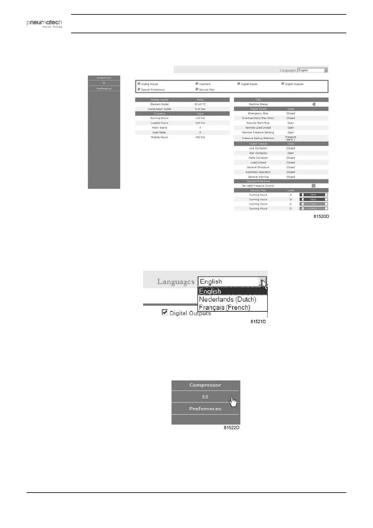 If a license for ESi is foreseen, the menu contains 3 buttons.
