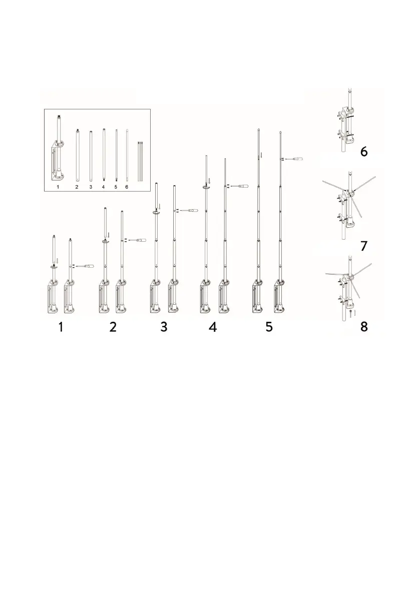антената. Фиксирайте двата сегмента с 2 винта.