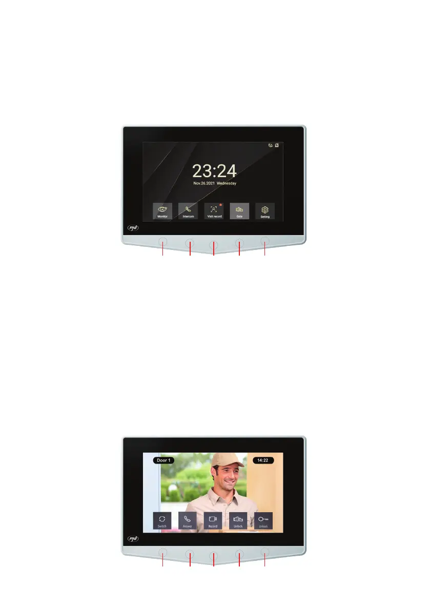 2. Gegensprechanlage: Drücken Sie diese Taste, um mit der Person im