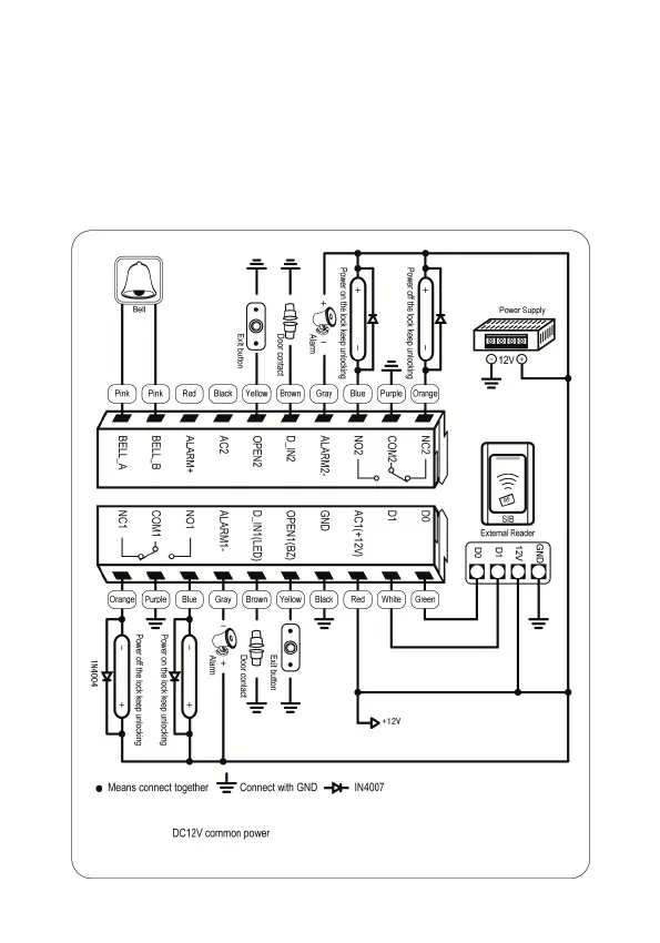 PNI DK220 - Two doors with external reader; Two doors with common 12 V DC supply